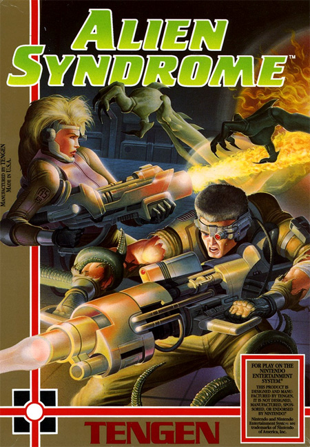 One or two players control two soldiers named Ricky and Mary, who must fight their way through large eight-way scrolling levels rescuing their comrades who are being held by aliens. After they have rescued a certain number of hostages the exit opens and they can pass through it in order to fight the end-of-level guardian. If this monstrosity is defeated, they move onto the next stage. As well as two player simultaneous gameplay, Alien Syndrome features pick-ups which assist the player including better weapons and maps of the current level.