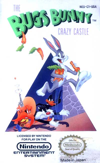 The object of the game is to guide Bugs through a series of rooms collecting carrots to save Honey Bunny. However, four rascals are guarding the castle: Sylvester, Daffy Duck, Yosemite Sam, and Wile E. Coyote. While presented in a side-scroller format, Crazy Castle differed from standard side-scrollers such as Super Mario Bros. in that Bugs Bunny (ironically) did not have a jump function; therefore, only by taking different routes could Bugs avoid enemies. Some of the levels had boxing gloves, invisible potions, or safes that could be used against the enemies in the game. As a result, the game had a "puzzle-solving" atmosphere. Because most NES game cartridges lacked the ability to save, passwords can be used to start at a certain level in this game. This is an especially helpful feature of the game, as it would take longer to complete the 80 levels than is really feasible for one sitting.