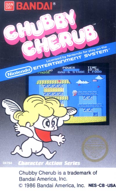 The North American Chubby Cherub game is about a flying cupid who eats food and attacks enemies with limited supplies of hearts. The Japanese game is about a ghost named Q-tar, a character from a manga series called Obake no Q-tar.