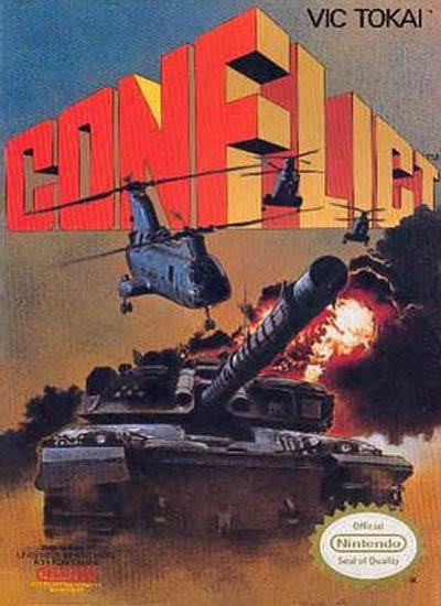 Conflict is an NES war game where the player is a three-star general who must accompany his troops to the ultimate victory. Like in the real army, the player can earn or lose victory points by occupying cities and destroying units of the opponent's army. The player controls the Western Bloc while the computer (or second player) controls Eastern Bloc troops. A sequel was released for the SNES entitled Super Conflict.
