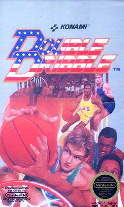 The NES version features 5-on-5 action on a horizontally scrolling court, four different teams (Boston, New York, Chicago, Los Angeles), three levels of single-play difficulty, and four different choices of quarter lengths. Double Dribble was among the first games to feature cut-scenes, which depicted a mid-air player completing a slam-dunk, and one of the first to use speech, though in a limited quantity (such as announcing the game title and the game's beginning jump ball).