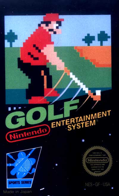 Golf is a sports-related video game released in 1985 for the Nintendo Entertainment System, and was the first golfing game to feature Mario. His appearance is slightly different from how he usually looks in games, wearing white and blue clothes and being fat. The user must first decide whether to play single stroke play or the two player selections of doubles stroke play or match play. The user is then placed at the tee of the first hole of eighteen. The game does not automatically switch to the best club, making it harder for a user with no knowledge of golf clubs at a disadvantage.