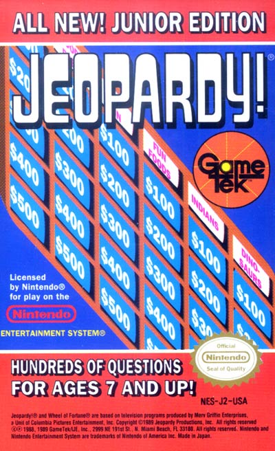 One of the most popular game shows in television history comes to your NES in Jeopardy! Just as in the television show, there are three rounds to this game: Jeopardy!, Double Jeopardy!, and Final Jeopardy! This edition is for younger players.