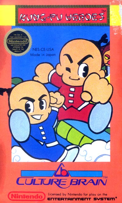 Upon returning to their homeland after weeks of martial arts training, good friends and Kung Fu masters Jacky and Lee find the land in a shadow of gloom, the inhabitants in sorrow. While they were out on their training session, monsters had invaded their land, kidnapping Princess Min-Min and stealing the land's ten treasures. Hiding the ten treasures throughout eight castles and holding Princess Min-Min in the furthest of them, these monsters are a force too terrible for any of the citizens to take on. The citizens plead with Jacky and Lee to rescue Princess Min-Min and retrieve the treasures so that happiness may be restored to the land. Thus, the friends begin their quest and enter the first of eight perilous castles. From an overhead perspective, Jacky and Lee will have to trek through each castle, each of which contains four danger-filled one-screen rooms, while fending off the attacks of a large variety of foes. Bazooka-firing soldiers trying to get their sights on them, Coffin Men that will shut them in and hold them for their pals, slithering snakes, soldiers in a number of varieties, and the very large and invulnerable Bison Commandos, among many others are waiting for our Kung Fu heroes. And only after they've destroyed a set amount of these foes, may they progress to the next room of the castle.