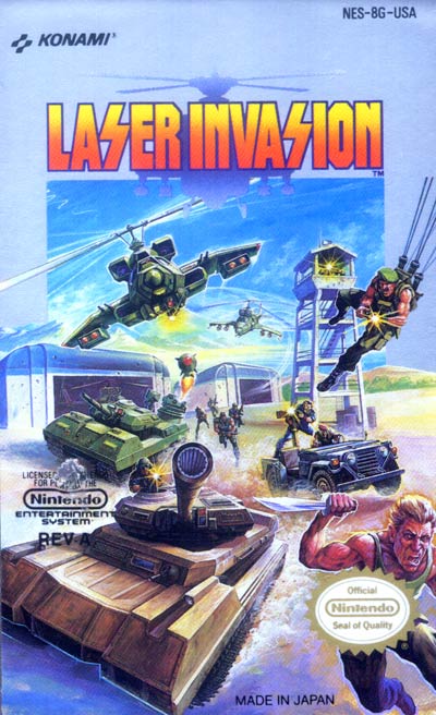 Laser Invasion is similar to the Top Gun series of NES games. Even the takeoff screen with the lifting gate and sound effects are the same as they appear on the Top Gun series. Of course, you're flying a helicopter in this one... but gameplay feels essentially the same. The standard NES controller and the NES Zapper can be used.