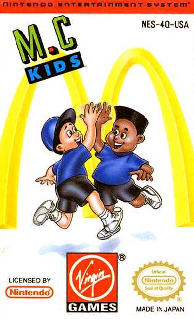 Mick and Mack are the two hippest kids in McDonaldland how they got there, nobody knows! But after the Hamburglar makes off with Ronald's magic bag, it's up to the M.C. Kids to retrieve it. You'll come face-to-face with bad guys like Goferit and Psycho as you try to solve the puzzles that will lead you to the Hamburglar and Ronald's bag. Run, duck, and throw your way through 30 levels in seven worlds that will call for you to raft across a lava river, skid across an ice bridge, and even set down on the moon! There's a Two-Player Cooperative mode if you're feeling overwhelmed, but if you want a real challenge, try playing the game in the Upside-Down mode! It's time to head to McDonaldland and help find Ronald's missing magic bag in M.C. KIDS.