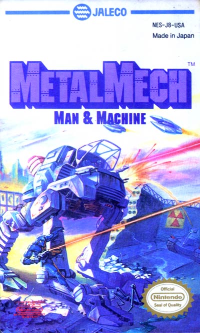 You control the pilot of a MetalMech vehicle (which looks similar to ED-209 of Robocop licenses) who can move across the screen left or right, either with the mech or without, and fire any direction except straight down. The Mech is better armored, but also a bigger target and much too big to climb ladders, so you'll find yourself as much outside as inside. Your goal is to cross each level filled with randomly generating enemies and reach the next. Power-ups are hidden in various containers and in various places.