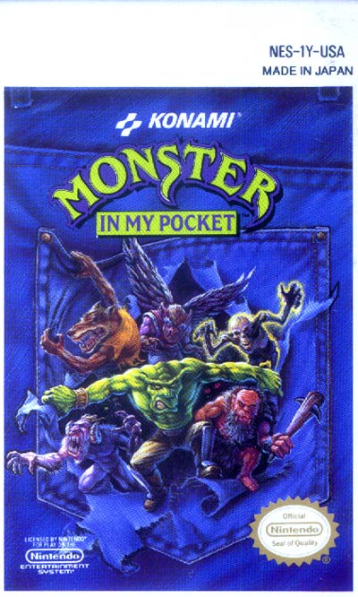 Warlock sends out his henchmen, led by Spring Heeled Jack, Bigfoot, Kraken, Gremlin, and Medusa while Vampire and The Monster are watching TV in the Miles home. They must fight their way through the upstairs and kitchen of the home, the street and sewer, emerging in a construction site and an Orientalist garden before fighting Warlock at Monster Mountain. And that's not quite the end. Vampire and the Monster's abilities in the game are the same (though 2-player simultaneous action was an option)--an attack that can extend slightly beyond their bodies with a bit of a blaze, and they can make a double-jump from the height of their jump, something that has since become a common move in many video games. The remaining good monsters from the comics--Werewolf, Vampiress, Golem, Swamp Beast, The Phantom of the Opera, Jotun Troll, Invisible Man, Dr. Jekyll, and Mummy--made no appearance whatsoever in the game, although Werewolf did appear on the cover. Warlock and Minotaur were the only two monsters from series 2 to appear in the game. In the comic book, however, Medusa declared that by her count, Vampire's side had a majority, though all the other series 1 monsters were included as enemies in the game. Blemmyes appeared prominently on the cover, and the figure was distributed exclusively with the game, though did not appear in the game itself. It came inside the box, next to a smaller piece of styrofoam than NES cartridge boxes normally contained.