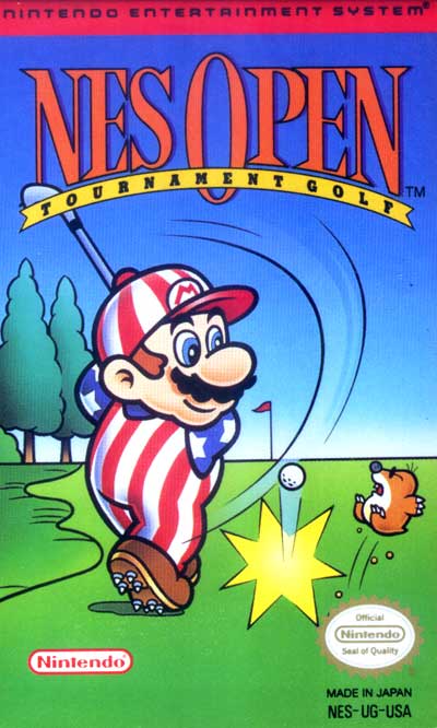 In Nes Open you can play a round of golf on one of three different courses! One or two players can play in the U.S., Japan, or the U.K. and choose a stroke or match play game. Gameplay is from two point of views, starting with an overhead view allowing you to set up the shot and choose a club, then switching to a 3-D point of view. Hitting the ball uses the common power meter where tapping the button starts the meter, tap the button a second time to select the amount of power in the shot, then tap the button a third time to select the amount of slice or hook. If you are unable to finish a round all at once, Nes Open features a battery backup allowing you to save the game and continue later. NES Open was released on Virtual Console the day after the final round of the U.S. Open in June of 2007.