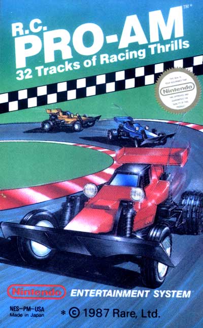 R.C. Pro-Am plays very similar to early 1980's overhead racers like Super Sprint; the game is fast, has very simplified physics, and the courses have a large number of twists and turns. The difference from those titles, is that R.C. Pro-Am's game engine has much more drifting involved, as cars will glide and spin around corners. Also, only the portion of the track around the player's vehicle is displayed, as opposed to the whole entire track. The game is presented from an isometric viewpoint, giving an illusion of three dimensions. The controls are simple, with one button being used to accelerate, and the other used for either firing weapons or honking the horn. The sound is very minimal in the game, with title and game over music numbers, track and racing sound effects, and a short melody played right before each race.