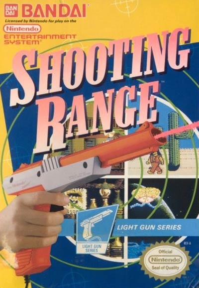 Shooting Range is a video game for the Nintendo Entertainment System made by Bandai in 1989. It involves mini-games resembling the Old West. (With the exception being the moon level.) The objective is simple: shoot the red and white targets on the character's heads and watch your energy level. It also includes a carnival-style game where you shoot glass bottles in a saloon.