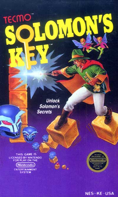 The player must overcome unlimited enemy spawning, challenging level designs, a countdown timer, Dana's fragility, and limited ways to dispatch enemies. In addition, it's easy for players to unintentionally make levels impossible to clear while playing them. Solomon's Key also has many hidden items and secret levels that are hard to find which enhances the reward for playing. The ending also slightly changes depending on which secret levels the player finds and completes, if any. The main character, Dana is sent to retrieve "Solomon's Key" to restore the world to light from demons that were accidentally released. The object of the game is to advance through the 50 rooms of "Constellation Space" by acquiring a key to the door that leads to the next room before a timer runs out. The game incorporates elements of the platform shooter genre. Dana can run, jump, create or destroy orange blocks adjacent to him as well as create fireballs to destroy demons. The orange blocks can also be destroyed by jumping into them twice. Along the way Dana can acquire items to upgrade his firepower and extra lives as well as item that award bonus points and unlock hidden rooms. With certain items, Dana must make, then break blocks (sometimes in a certain manner) to make these appear.