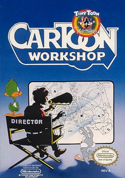 Instead of just watching Tiny Toon Adventure cartoons, why not create your own? With TINY TOON CARTOON WORKSHOP, that's exactly what you'll be doing in no time flat! You're in charge of every aspect of your cartoon, including the character, setting, the action, music, sound effects, and dialogue. You can direct one or two characters, and there's a wide selection of classic cartoon phrases you can use to create your very own masterpiece. If you've got the patience and the skill, you can create a cartoon that is up to five minutes long! And you can save your creations for later viewing by recording them with your VCR. Forget all those years of schooling you can be a cartoonist right now with TINY TOON CARTOON WORKSHOP!