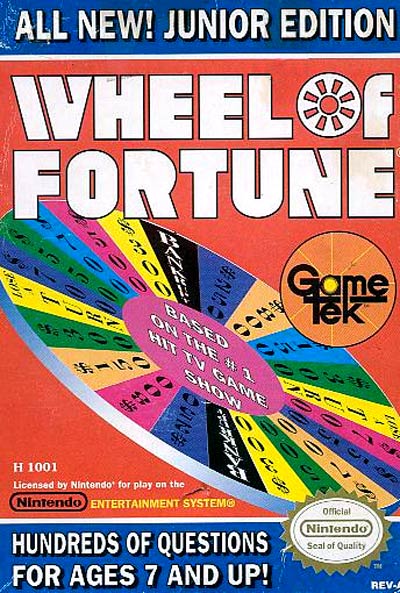 The NES version was designed by Rare, and three editions were made: The original in 1988, a Junior Edition in 1989, and a Family Edition in 1990. Oddly, the Family Edition does not feature the famous Wheel of Fortune theme. This does not support the NES Four Score accessory; the third player must use the first player's controller. This version featured three rounds, a wheel that never changed values (The Top Dollar value in every round was $1,000), and the third round was always the Speed Round with the final spin. If the player advances to the bonus round, they must choose a prize to play for and solve the final puzzle by choosing five consonants and one vowel (this was before R, S, T, L, N and E were given in the offset). The only differences with the Junior Edition is puzzles more identifiable to children and prizes to match (instead of playing for cars, players play for trips or similar). The Family Edition follows this same route. Another version, titled Wheel of Fortune featuring Vanna White, was a new version designed by IJE, who also developed Talking Super Jeopardy! at the same time.