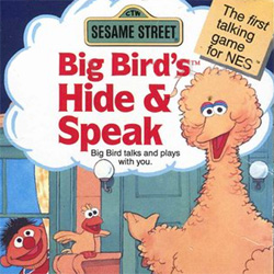 Sesame Street: Big Bird's Hide and Speak is a game for the NES. It was one of the simplest-to-play NES games ever released commercially. This game stars Big Bird and co-stars Little Bird, and features Bert, Ernie, Count, Grover, and Elmo. All 4 sides of t...